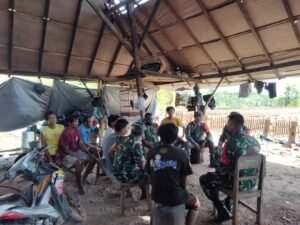 Sorong, Papua Barat – Babinsa Koramil 1802-03/Salawati Serma Suparmin beserta 9 orang melaksanakan Komunikasi Sosial (Komsos) tentang program vaksin Covid-19 di Distrik Salawati, Kabupaten Sorong, Papua Barat. Selasa(04/01/2022).