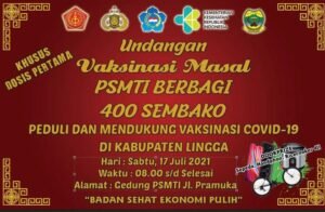 Dabo Singkep – Dalam rangka bantu mensukseskan program pemerintah melaksanakan Vaksinasi guna menekan lajunya angka pasien terpapar covid-19. Paguyuban Sosial Marga Tionghoa Indonesia (PSMTI) Kabupaten Lingga akan menggelar kegiatan Vaksin Massal pada Sabtu 17 Juli 2021 mendatang.