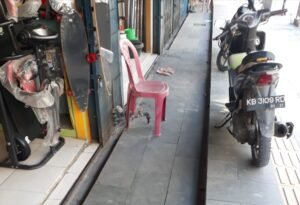 Apa lagi badan trotoar yang ada juga lebih tinggi dari lantai ruko mereka. Sehingga tempias dan rembesan air hujan deras rentan meluber ke lantai ruko. Begitu juga pada badan jalan yang sangat sempit sekali. Terutama di jalur Jl. Panjaitan kini semakin sempit dengan ada nya Trotoar.