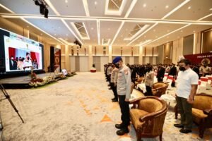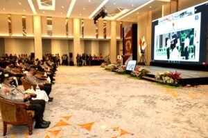 Surabaya – Kapolda Jawa Timur Irjen Pol Nico Afinta mengikuti upacara Hari Ulang Tahun Satuan Pengamanan (Satpam) ke 41 secara virtual pada Rabu (2/2/2022), di salah satu hotel Surabaya. Kapolda juga mengatakan, kedepan Satpam akan dilibatkan dalam membantu dalam penegakan prokes covid-19 di Jatim.