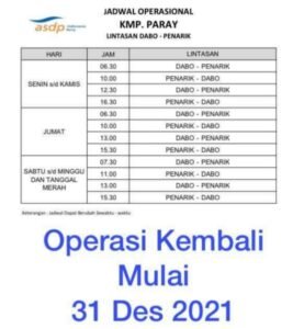 Setelah ini nanti berjalan lancar dan normal baru kita dari pihak Dishub Lingga bisa pastikan apakah sudah benar-benar layak pungsi dan beraktivitas sempurna sepenuhnya seperti biasa, dan jika sudah normal pelayanannya maka untuk rute Jagoh – Penarik ditambah jadwal keberangkatan yang sebelumnya dari dua kali/trip perhari, kini sudah dijadwalkan menjadi tiga kali/trip dalam setiap harinya, papar Amir.