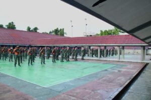 Sorong, Papua Barat – Menginjak awal tahun 2022, Perwira Staf Operasi Resimen Bantuan Tempur 3 Marinir (Pasops Menbanpur 3 Mar) Pasmar 3 Letkol Mar Anang Agus Wahyudi, S.H.M.Tr.Opsla memimpin apel khusus seluruh prajurit “Goura Victoria” Menbanpur 3 Marinir di lapangan apel Mako Menbanpur 3 Marinir, Kesatrian Marinir Katapop Abraham Octavianus Atururi, Distrik Salawati, Kab. Sorong, Papua Barat, Senin (03/01/2022).