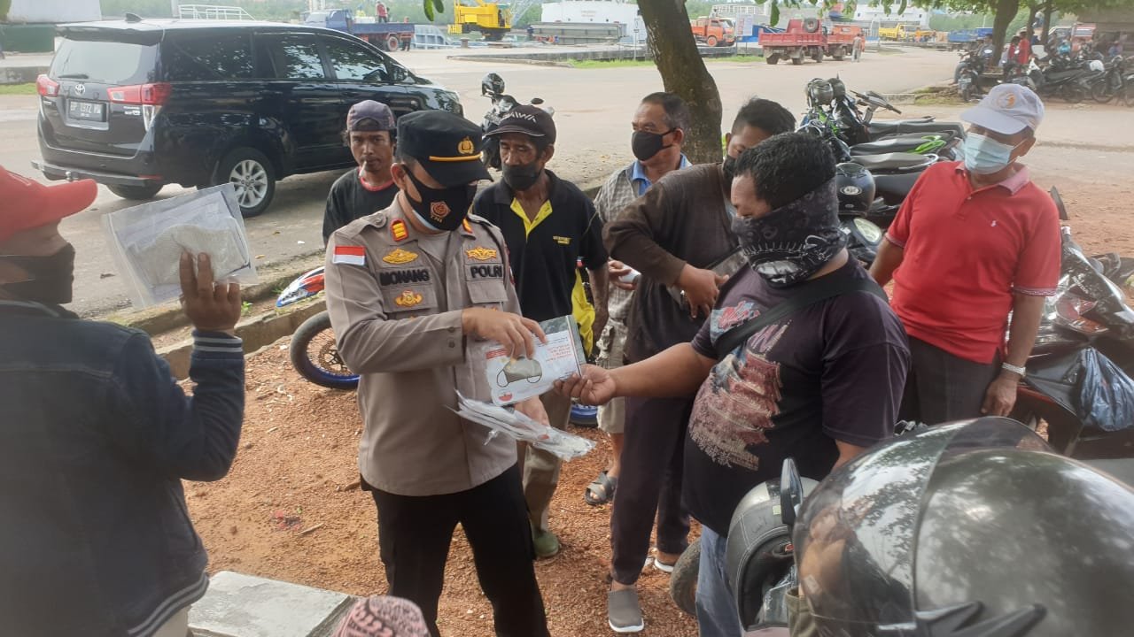 “Pembagian masker sebanyak 70 lembar di Pelabuhan Sri Payung dan 50 Lembar di Pelabuhan Roro Dompak,” tambahnya