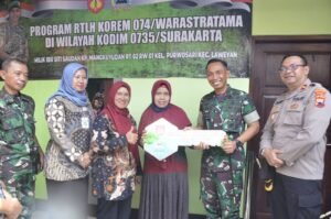 Surakarta – Dalam rangka membantu program pemerintah daerah dalam pengentasan kemiskinan serta mewujudkan Rumah yang layak huni bagi warga masyarakat kurang mampu, Korem 074 Warastratama melaksanakan Bedah Rumah di rumah milik Ibu Siti Saudah, seorang janda berusia 64 tahun yang beralamatkan di Kampung Mangkuyudan RT 02, RW 01 Kelurahan Purwosari, Kecamatan Laweyan yang merupakan wilayah Kodim 0735/Surakarta.