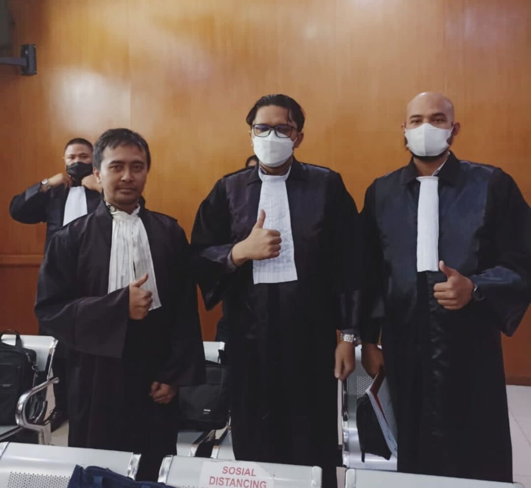 Advokat Alman Adi, SH., MH., CPCLE., CPT., CMLC., CMnCLS., CACLS., CPArb., CPL., CPM bersama dengan Tim di antaranya Fajar Maulana Yusuf, SH., MH., CPCLE dan F. Ramdan Setiawan, SH., yang mendampingi Terdakwa dengan inisial “FYT” menyampaikan kliennya hari ini di hadirkan di hadapan persidangan secara Daring yang saat ini di tahan di Rumah Tahanan Negara Kelas I Bandung.