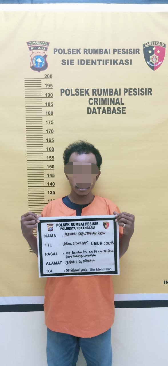 Pekanbaru – Peredaran narkotika di Kecamatan Rumbai seperti tak ada habisnya, kali ini anggota opsnal Polsek Rumbai Pesisir Polresta Pekanbaru kembali meringkus seorang pemuda berusia 27 tahun berinisial JS Pada Hari Sabtu 05/02/2022 sekira pukul 14.30 Wib di Jl. Pesisir dekat jembatan merah putih Kelurahan Meranti Pandak, Kecamatan Rumbai, lantaran kedapatan membawa narkotika jenis sabu.