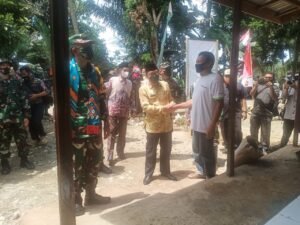 Barabai, HST – Tim Pengawasan dan Evaluasi Brigjen TNI Yohanis Payung, SE.,M.Tr, (Han) Pa Sahli TK.II Kasad Bidang Keamanan dan Teror bersama Wakil Bupati HST Drs.Mansyah Sabri didampingi Kepala Staf Korem 101/Antasari Kolonel Arh Heri Purwanto,S.I.P., Dan Satgas TMMD Letkol Inf Muh Ishak HB. dan unsur Forkopimda, Hulu Sungai Tengah (HST) melakukan peninjauan hasil program TMMD.