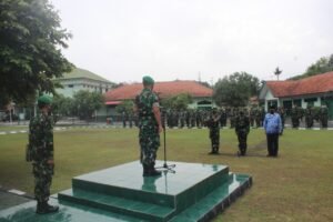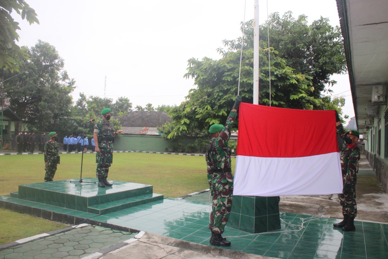 Surakarta – Bertempat di Lapangan Upacara Makodim 0735/Surakarta,Jln. A Yani No.349, Kelurahan Kerten Kecamatan Laweyan Personil Jajaran Kodim 0735/Surakarta baik Militer maupun PNS melaksanakan kegiatan Upacara pengibaran bendera bulanan, Senin (17/01/2022).
