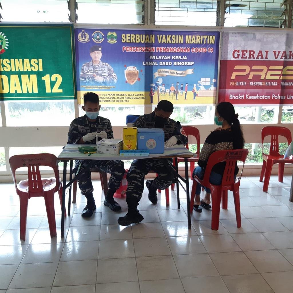 Dabo Singkep – Kegiatan serbuan Vaksinasi Maritim masih terus berlangsung di Kabupaten Lingga, kali ini Pangkalan TNI Angkatan Laut (Lanal) Dabo Singkep melaksanakan Serbuan Vaksinasi Maritim Covid-19 untuk warga masyarakat di Dabo, Kecamatan Singkep, Kabupaten Lingga. Sabtu (05/11/21).
