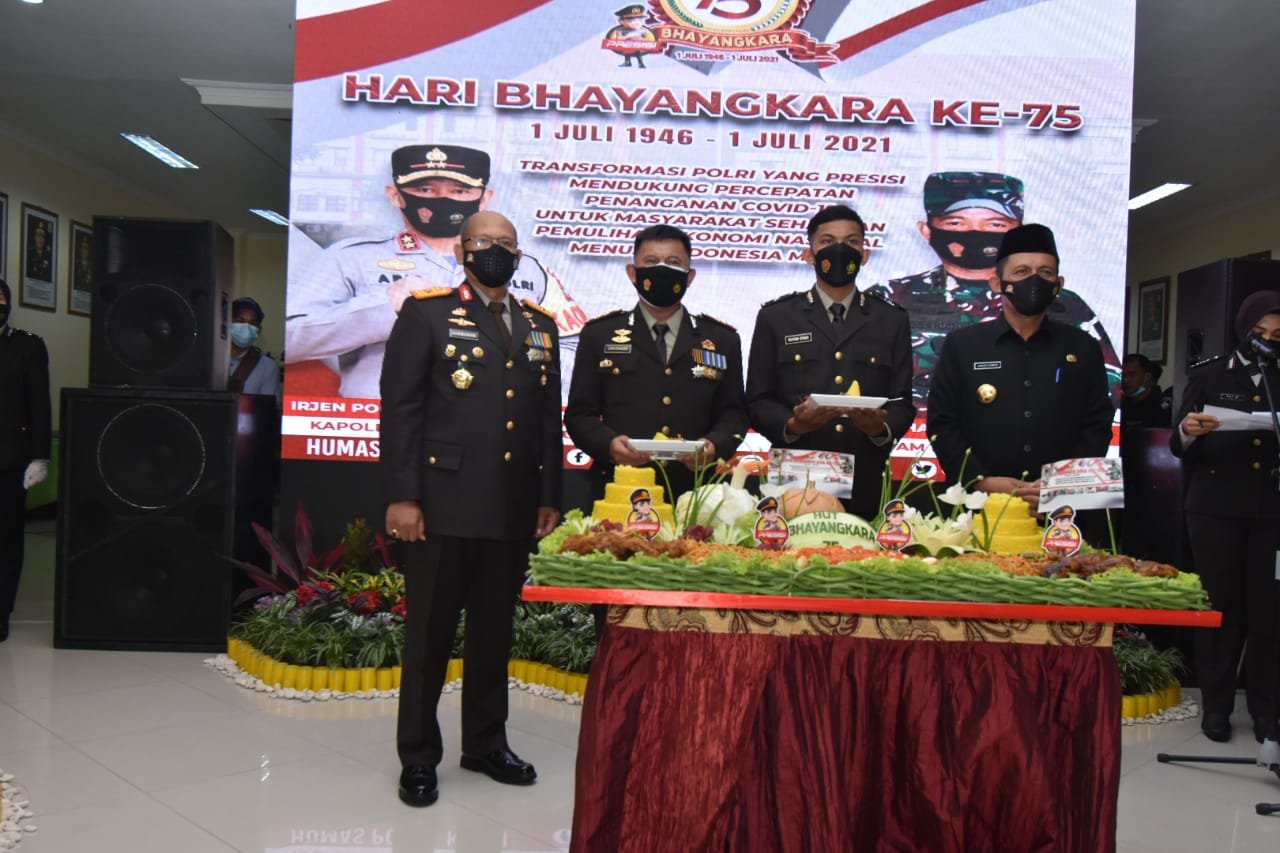 ″Dalam menghadapi berbagai agenda nasional kedepan Polri bersama dengan TNI siap untuk berperan aktif dalam mengawal pelaksanaan rencana kerja pemerintah tahun 2021 serta mendukung penuh upaya penanggulangan Pandemi Covid – 19 dan Pemulihan Ekonomi Nasional. Sesuai dengan tema Hari Bhayangkara ke – 75. ″Transformasi Polri Yang Presisi Mendukung Percepatan Penanganan Covid-19 Untuk Masyarakat Sehat dan Pemulihan Ekonomi Nasional Menuju Indonesia Maju″, seluruh rangkaian kegiatan kami fokuskan untuk meningkatkan disiplin protokol kesehatan bagi masyarakat dalam rangka memutus rantai penyebaran covid -19 serta menjaga Kamtibmas yang Kondusif″. Jelas Wakapolda Kepri Brigjen Pol Drs. Darmawan, M. Hum.