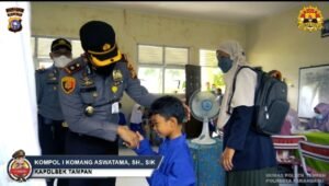 Pekanbaru – Kapolresta Kombes Pol. Dr. Pria Budi, S.I.K., M.H. melalui Kapolsek Tampan Kompol. I Komang Aswatama, S.H., S.I.K., didampingi Kasi Humas Polsek Tampan Ipda Syafriwandi gelar Vaksinasi Merdeka Anak dalam upaya percepatan Vaksinasi di Kota Pekanbaru khususnya di Wilayah Hukum Polsek Tampan. Jumat,(21/01/2022).