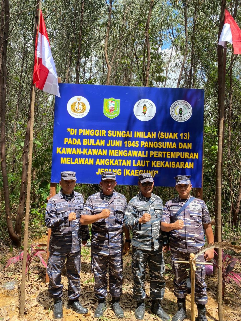 Mempawah, Kalbar – Wakil Komandan Lantamal XII Kolonel Marinir Budiarso., S.E., mewakili Danlantamal XII Pontianak Laksamana Pertama TNI Suharto, S.H, M.Si.(Han) mengikuti acara Penempatan Papan Prasasti Situs Perjuangan Pangsuma dan Napak Tilas di Suak 13 Dusun Nek Bindang Kabupaten Sanggau dalam rangka mengenang sejarah perjuangan Pahlawan Pangsuma melawan Penjajahan Bangsa Jepang, Jum’at (02/12/2022).