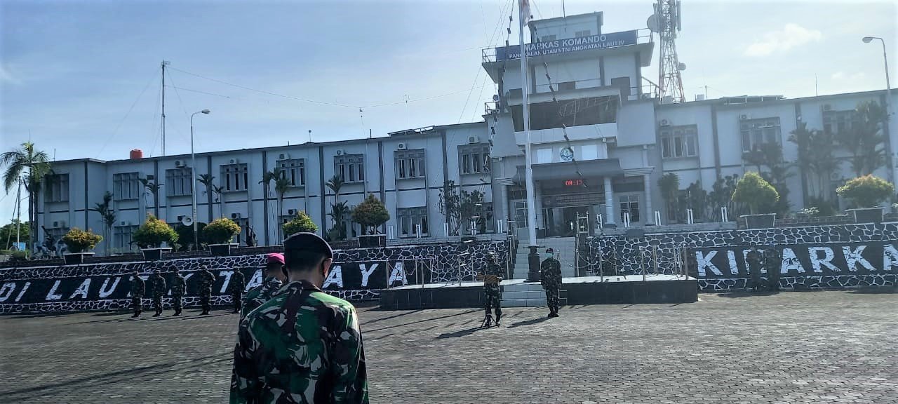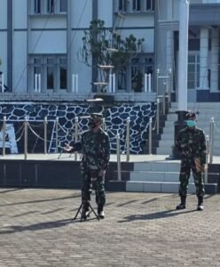Tanjung pinang – Wakil Komandan Pangkalan Utama TNI Angkatan Laut (Wadanlantamal) IV Tanjung pinang Kolonel Marinir Andi Rahmat M, memberikan pengarahan pada saat apel gabungan dihadapan segenap Prajurit dan Pns Lantamal IV di Lapangan Apel Markas Komando (Mako) Lantamal IV, Jl. Yos Sudarso No.1 Batu Hitam Tanjung pinang, Kepulauan Riau, Senin pagi (03/5/2021).