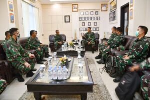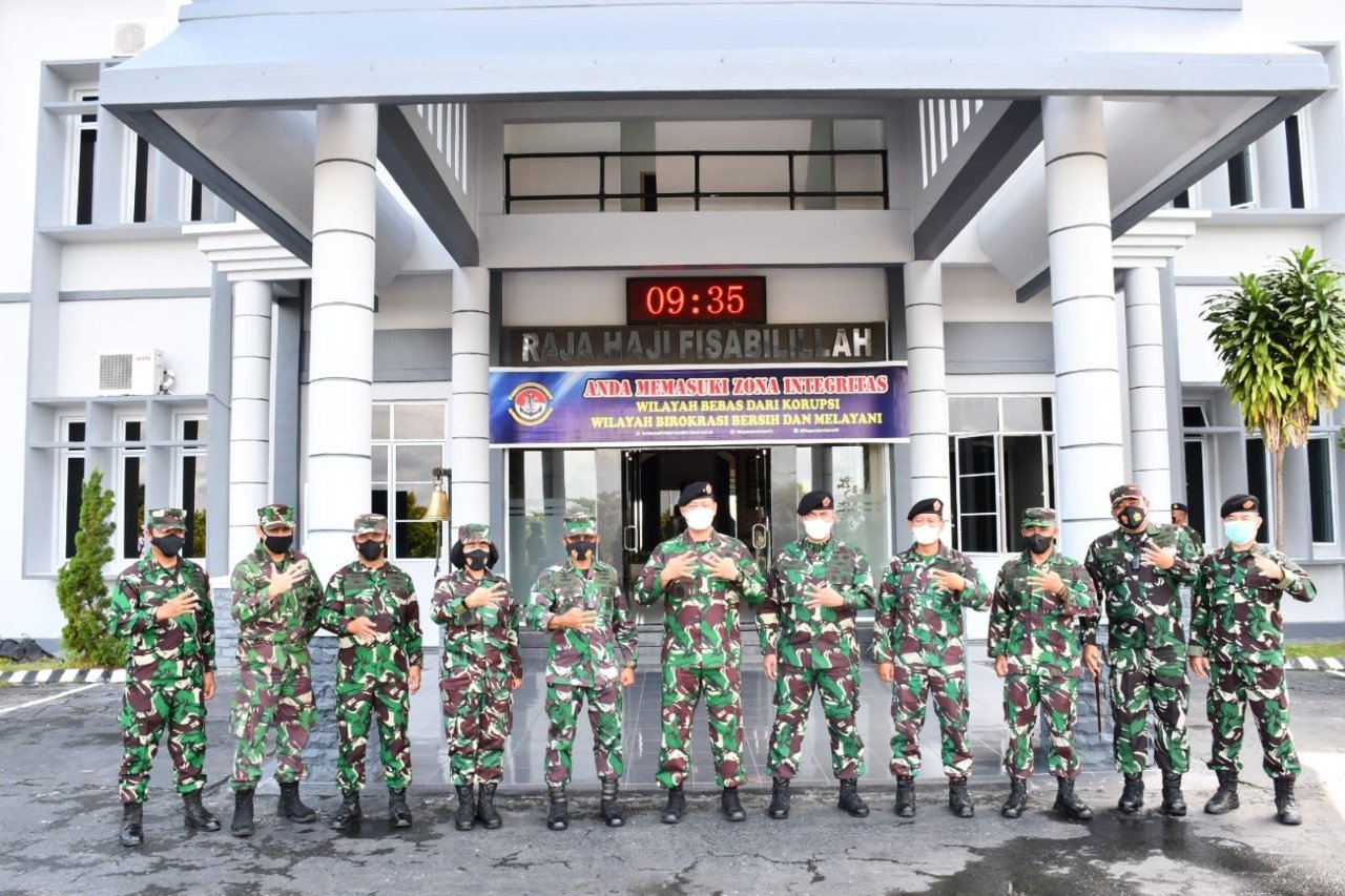 Lantamal IV (Tanjungpinang) – Wakil Komandan Pangkalan Utama TNI Angkatan Laut (Wadanlantamal IV) Kolonel Marinir Andi Rahmat M, mewakili Danlantama IV Laksamana Pertama TNI Indarto Budiarto, S.E., M.Han., menerima kunjungan kerja dari Kepala Pusat Kajian Strategi TNI (Kapusjianstra TNI) Brigjen TNI Djony Djamaris, S.I.P., M.I.P., beserta rombongandi ruang VIP Mako Lantamal IV Jl. Yos Sudarso No.1 Batu Hitam Tanjungpinang Kepulauan Riau, Selasa pagi (07/9/2021).