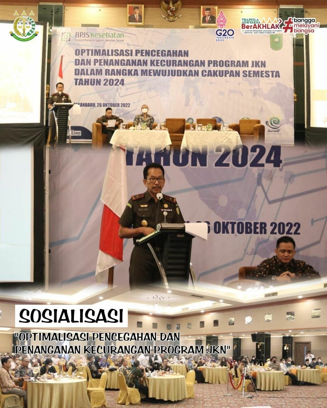 CAHAYANEWSKEPRI.COM – Bambang Heripurwanto SH.MH., selaku Kasi Penkum Kejati Riau Menyatakan bahwa Wakil Kepala Kejaksaan Tinggi Riau Akmal Abbas, SH., MH menjadi narasumber pada kegiatan Sosialisasi Optimalisasi Pencegahan dan Penanganan Kecurangan Program JKN dengan tema “Penanganan Kecurangan Dalam Program JKN”.