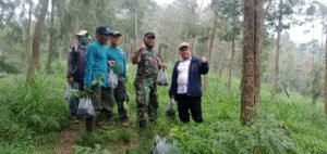Boyolali – Anggota Koramil 07/Selo Kodim 0724/Boyolali Pelda Gianto mendampingi kegiatan penghijauan di lereng Merbabu sekitar Tuk Babon Desa Selo, Kecamatan Selo, Kabupaten Boyolali. Kamis (03/02/2022).
